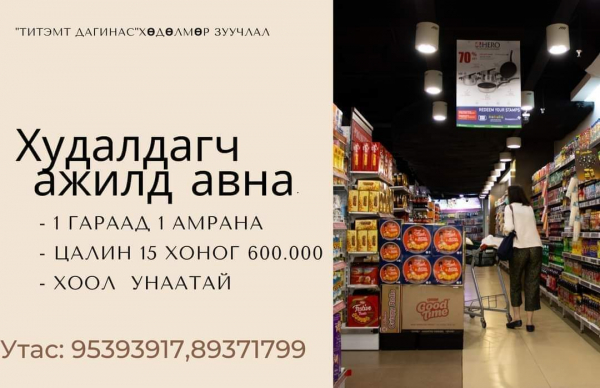Худалдагч ажилд авна.